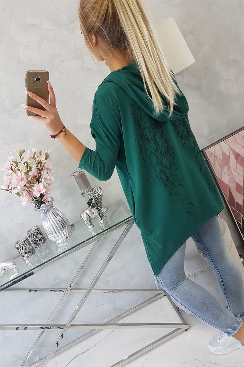 Prezentujemy Państwu modną bluzę. Bluza posiada nadruk z tyłu przedstawiający skrzydła. Bluza z kapturem oraz kieszeniami. Bluza wykonana jest z wysokiej jakości materiału. Rozmiar jest uniwersalny i będzie odpowiedni dla Pań w rozmiarze S,M, L.