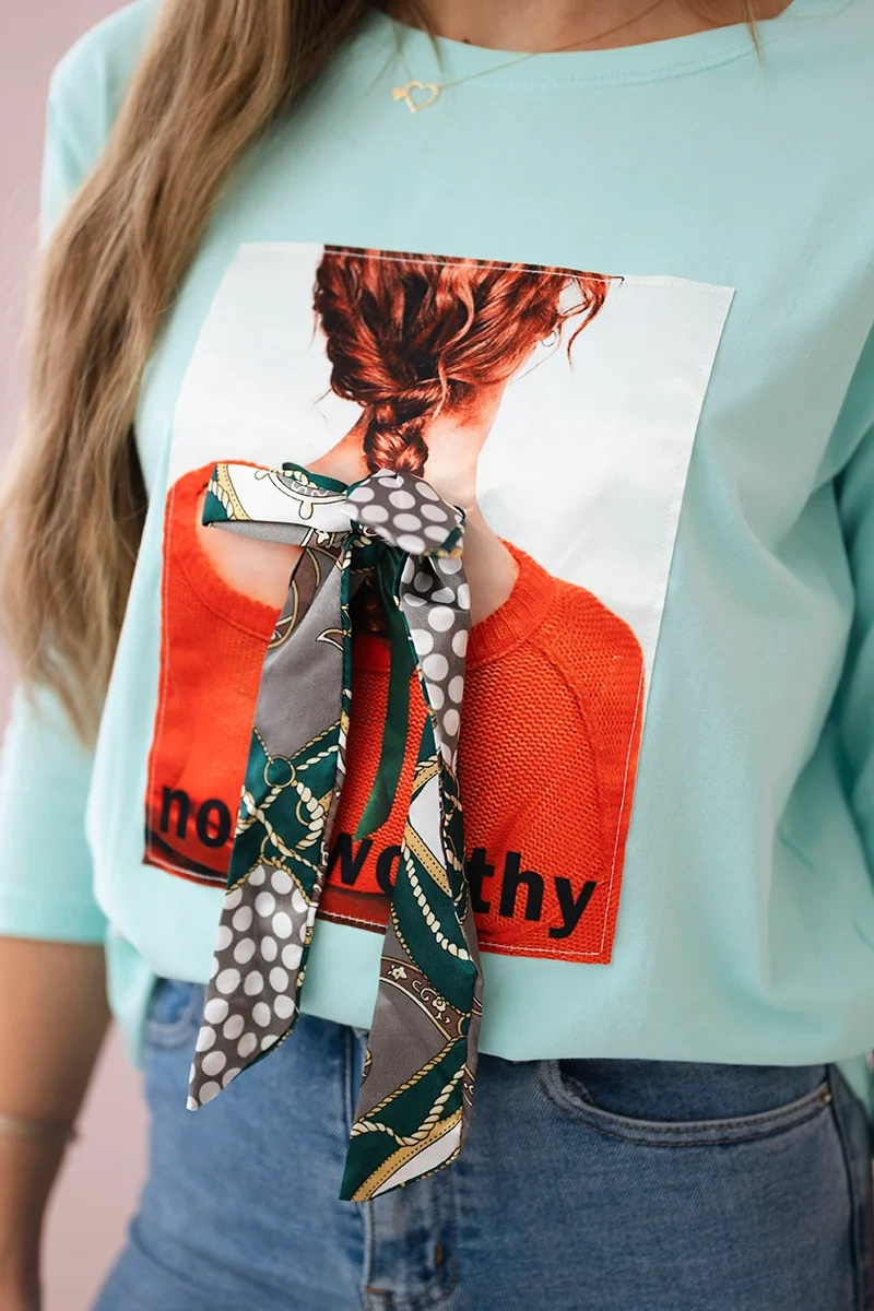 Prezentujemy Państwu modną bluzkę. Bluzka posiada naszytą grafikę z napisem Noteworthy. Bluzka ta charakteryzuje się modnym wyglądem i precyzją wykonania. Na pewno nie może jej zabraknąć w Twojej szafie. Bluzka wykonana jest z wysokiej jakości materiału. Rozmiar uniwersalny będzie odpowiedni dla Pań noszących na co dzień ubrania w rozmiarze S, M lub L.