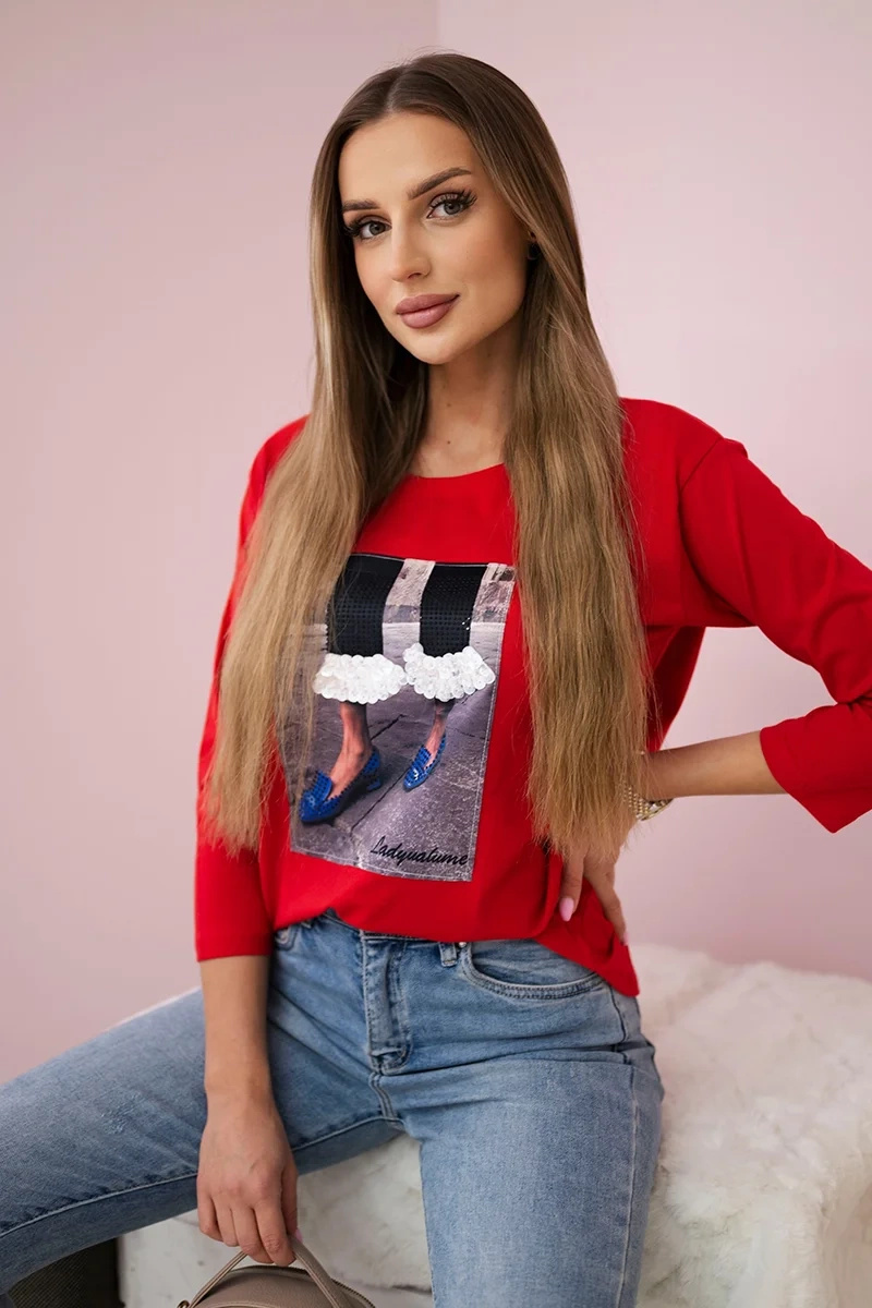 Prezentujemy Państwu modną bluzkę. Bluzka posiada naszytą grafikę z cyrkoniami. Bluzka ta charakteryzuje się modnym wyglądem i precyzją wykonania. Na pewno nie może jej zabraknąć w Twojej szafie. Bluzka wykonana jest z wysokiej jakości materiału. Rozmiar uniwersalny będzie odpowiedni dla Pań noszących na co dzień ubrania w rozmiarze M, L lub XL.