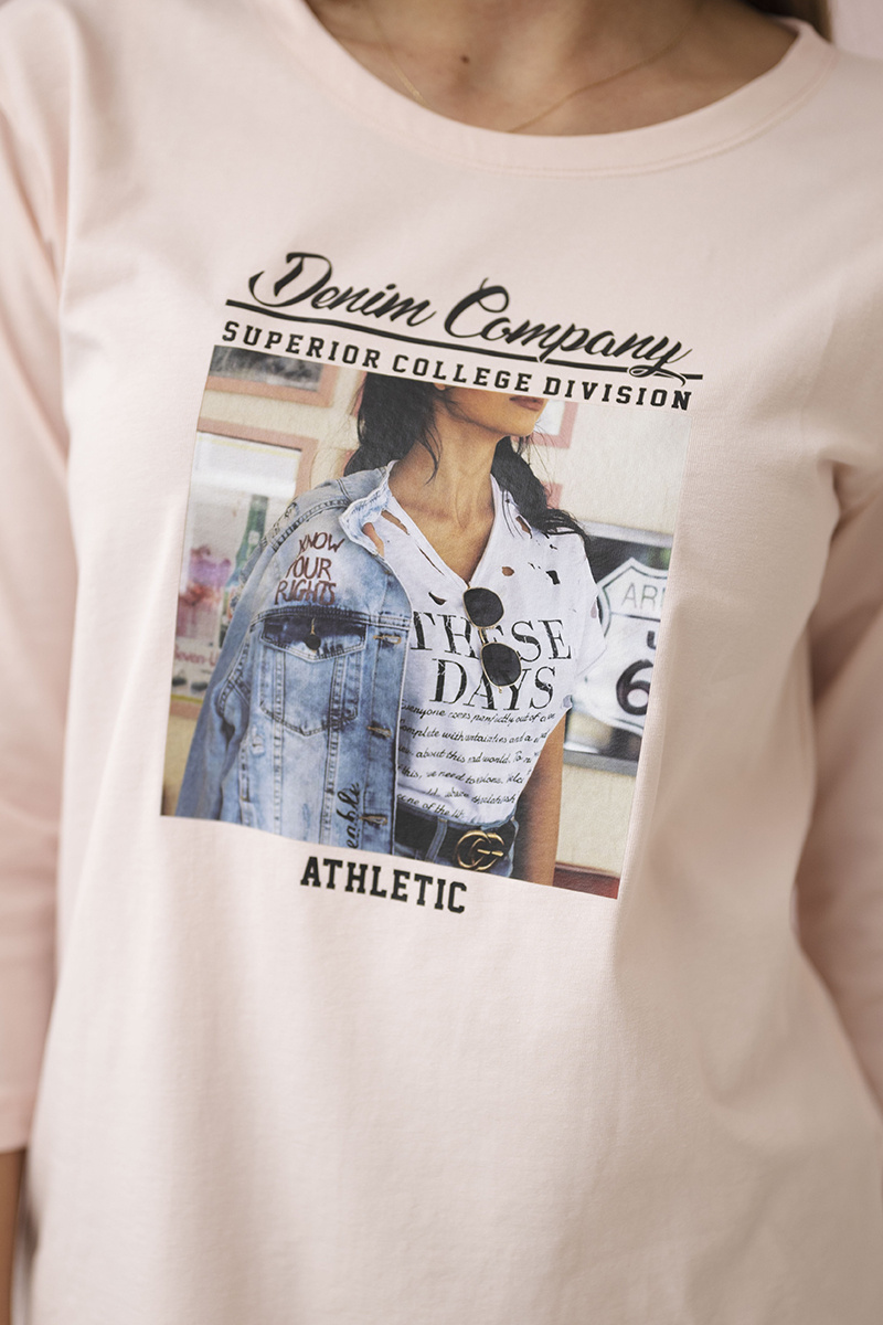 Bluzka z nadrukiem Collage pudrowy róż - Varvi Shop