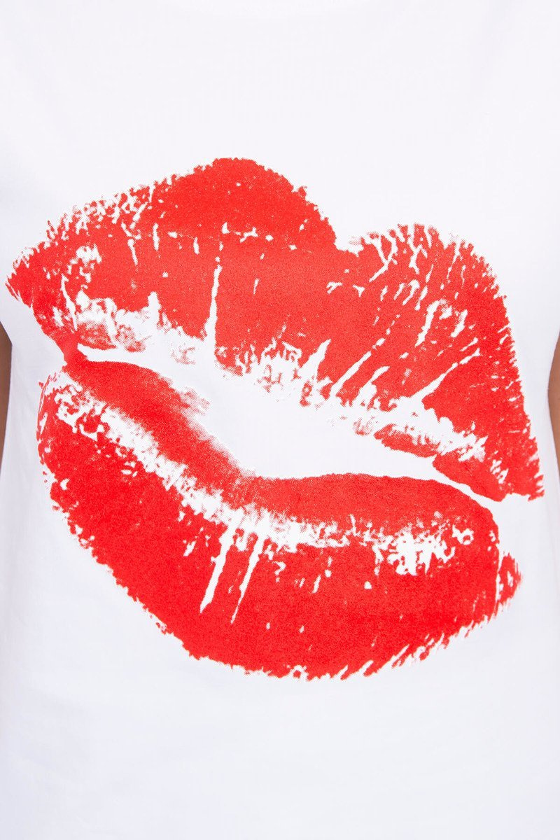 Prezentujemy Państwu modną bluzkę. Bluzka z nadrukiem ust. Bluzka z krótkim rękawem. Super grafika na koszulce. Bluzka idealna na lato do szortów. Bluzka wykonana jest z wysokiej jakości materiału. Rozmiar jest uniwersalny i będzie odpowiedni dla Pań noszących rozmiar S, M lub L.