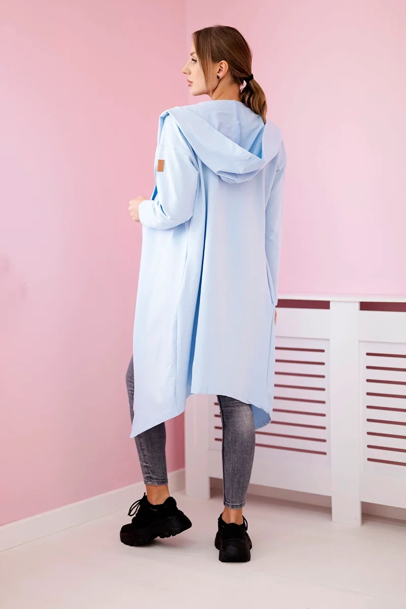 Narzutka długa z kapturem błękitna