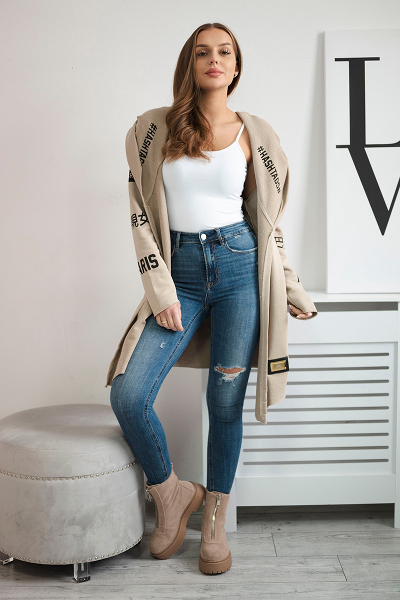 Prezentujemy Państwu długą narzutkę z kapturem i napisami. Narzutka wykonana jest z wysokiej jakości materiału. Rozmiar jest uniwersalny i będzie odpowiedni dla Pań w rozmiarze S, M i L