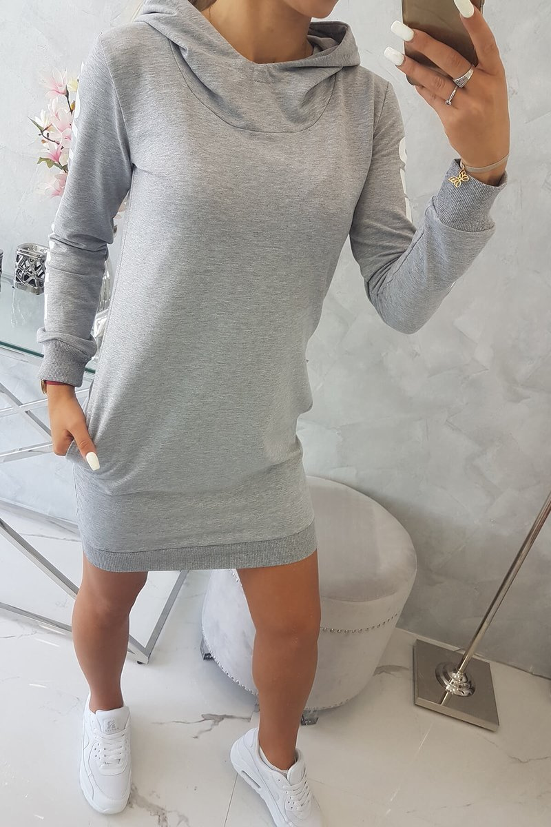 Prezentujemy Państwu modną sukienkę. Sukienka z kapturem oraz napisem na rękawie off white. Sukienka posiada kieszenie. Sukienka wykonana jest z wysokiej jakości materiału. Rozmiar jest uniwersalny i będzie odpowiedni dla Pań noszących rozmiar S, M lub L.