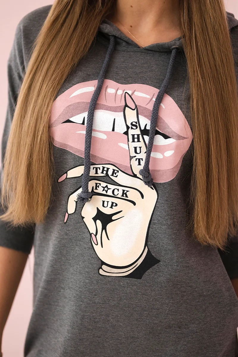 Sukienka z dłuższym tyłem i kolorowym nadrukiem grafitowa