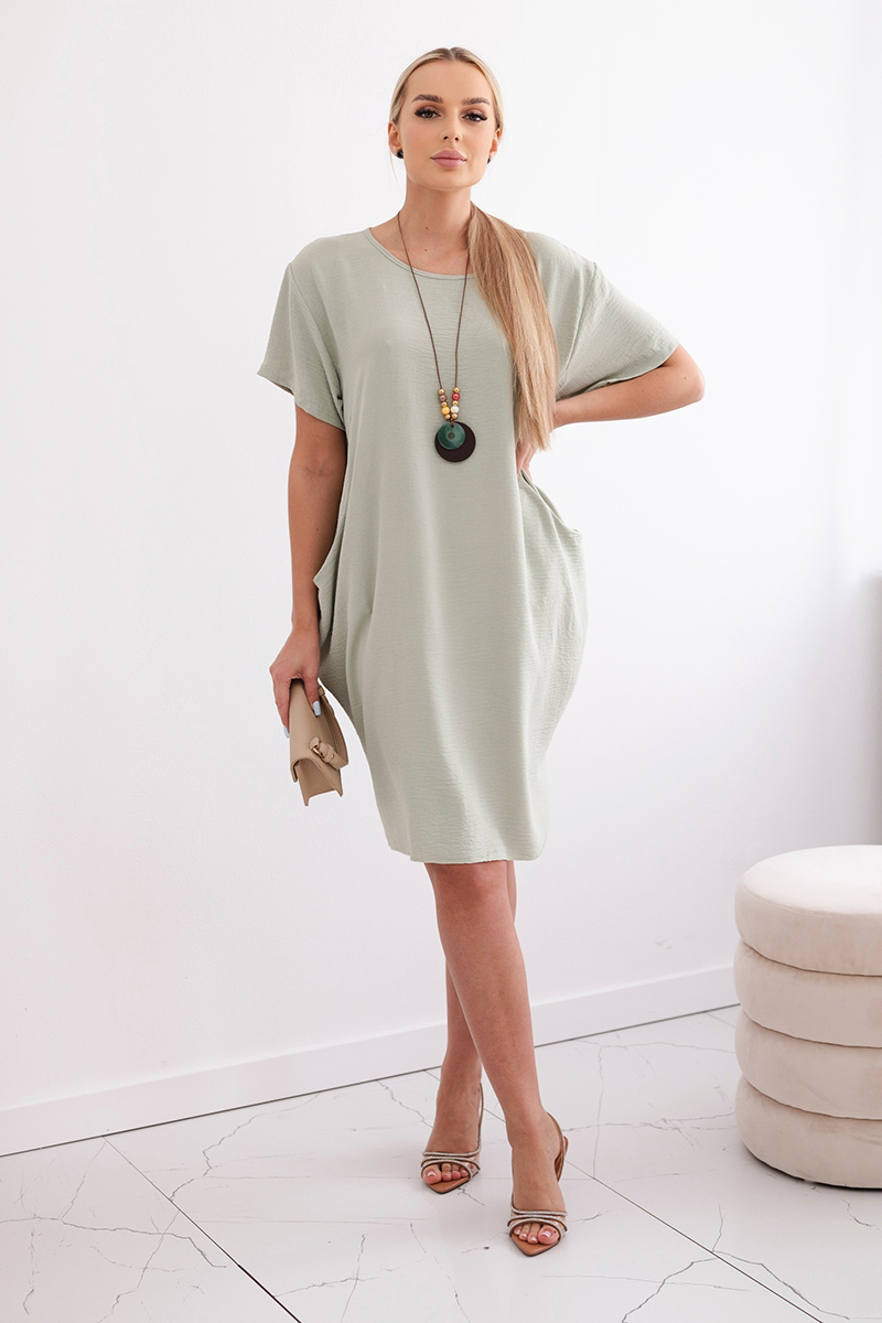 Sukienka z kieszeniami i wisiorkiem jasno zielona