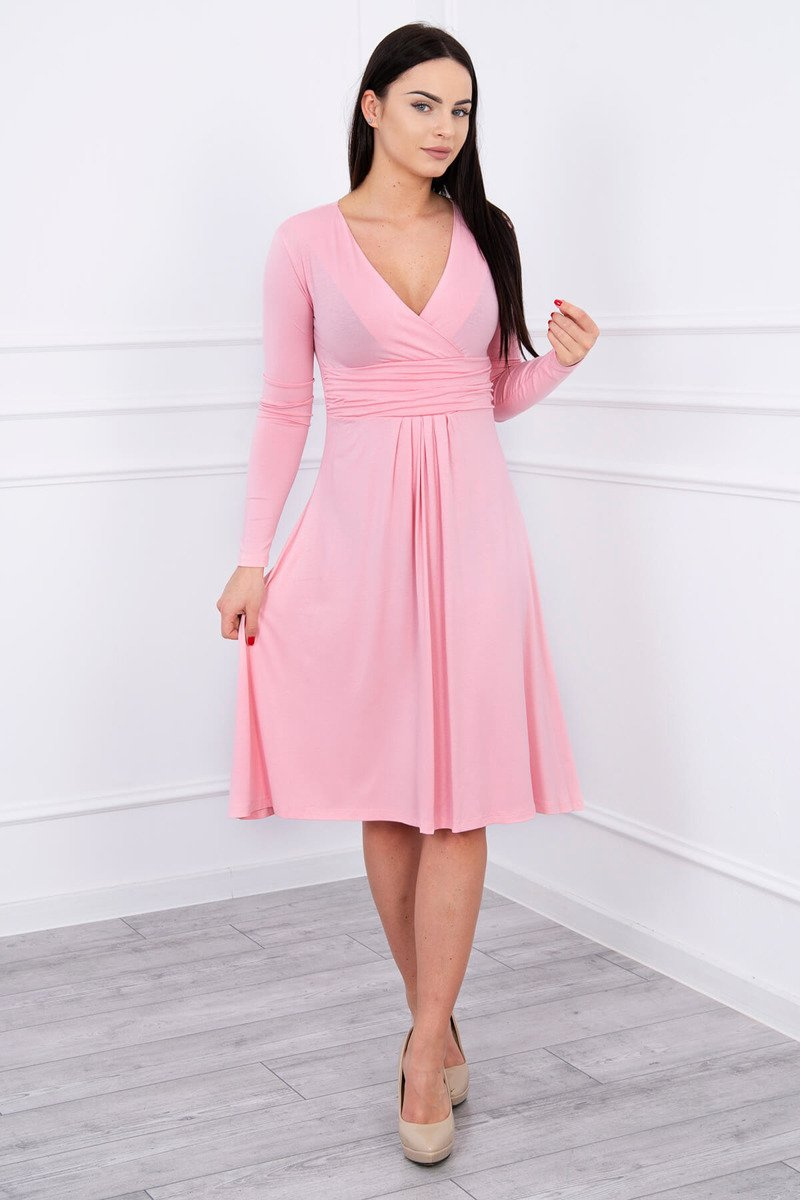 Sukienka z odcięciem pod biustem pudrowy róż - Varvi Shop