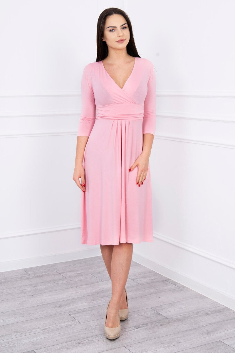 Sukienka z odcięciem pod biustem pudrowy róż - Varvi Shop