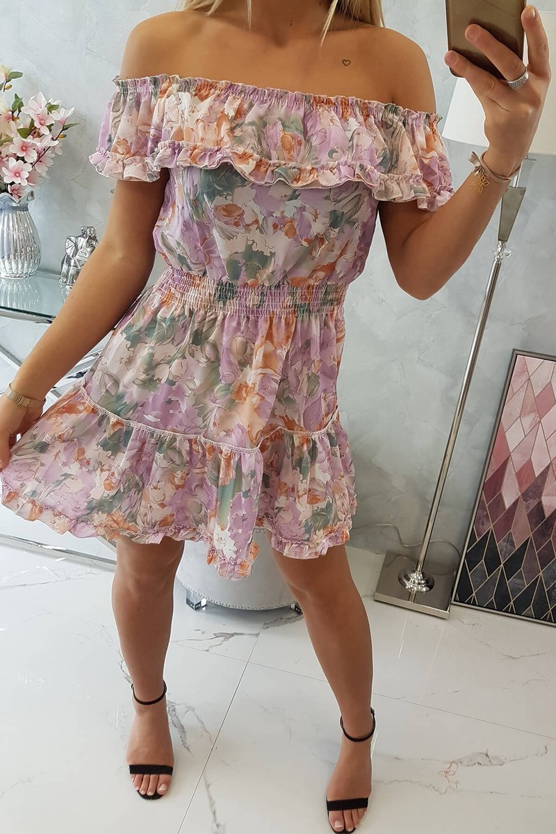 Sukienka z odkrytymi ramionami w kwiaty fioletowa - Varvi Shop