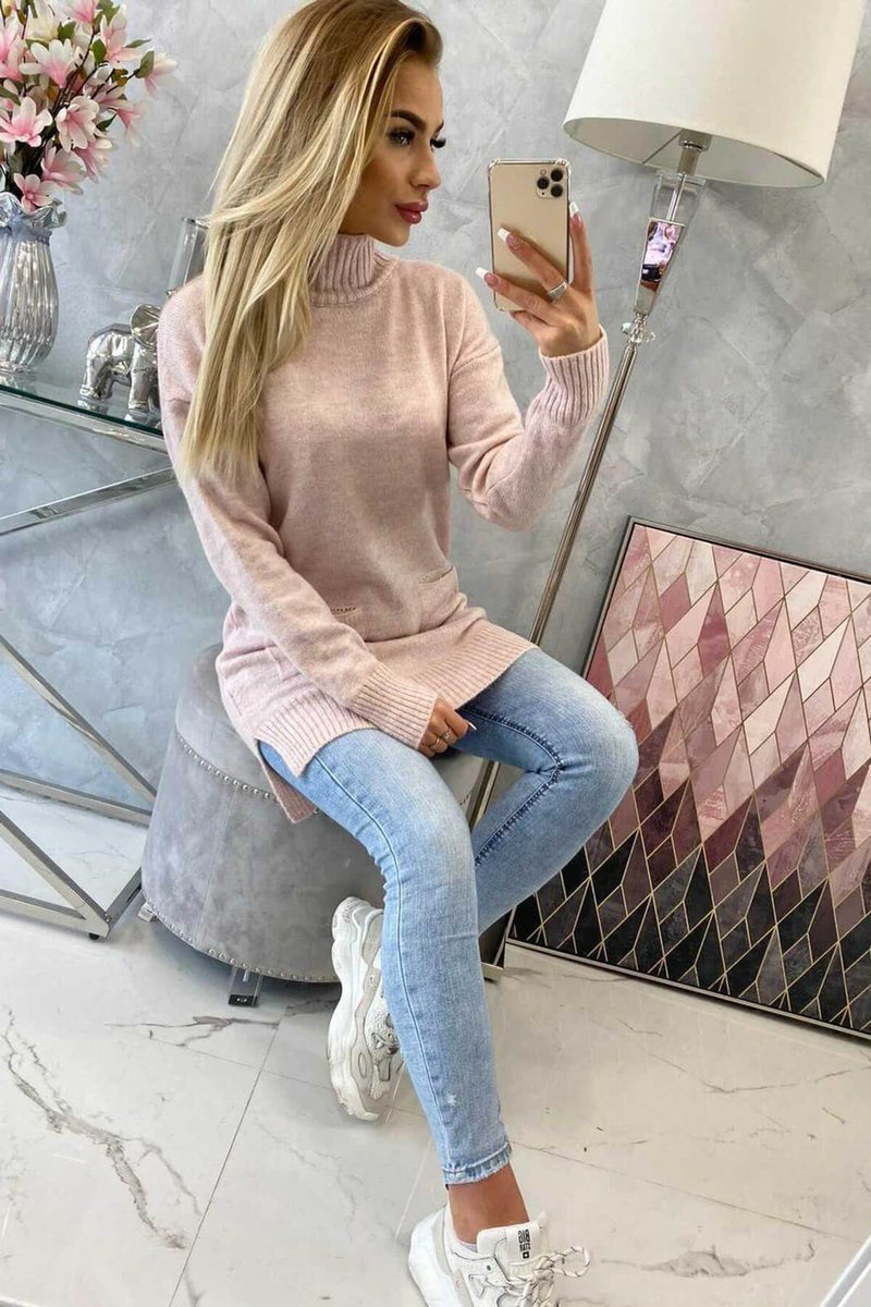 Prezentujemy Państwu modny sweter. Sweter posiada kołnierz ze stójką. Dwie kieszenie z przodu. Sweter zakładany przez głowę. Klasyczny krój idealny do każdej stylizacji na zimę. Ciepły miły w dotyku. Sweter wykonany jest z wysokiej jakości materiału. Rozmiar jest uniwersalny i będzie odpowiedni dla Pań w rozmiarze M, L, XL.
